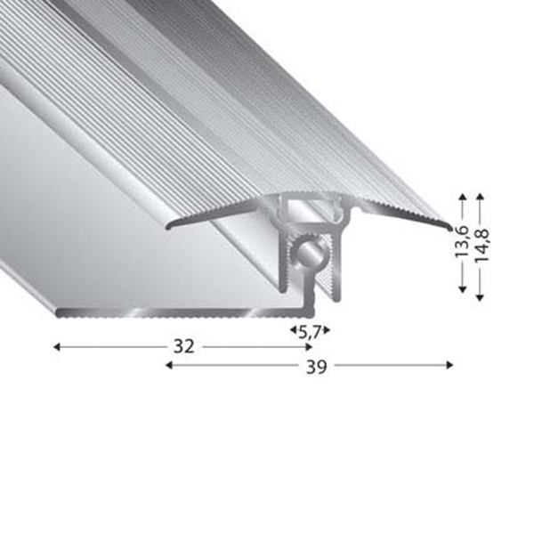 Profil za prekrivanje dilatacijskih rež na istem nivoju ali z višjega na nižji nivo. S podprofilom z okroglo glavo, ki omogoča boljše prilagajanje. Nevidni sitem pritrjevanja.