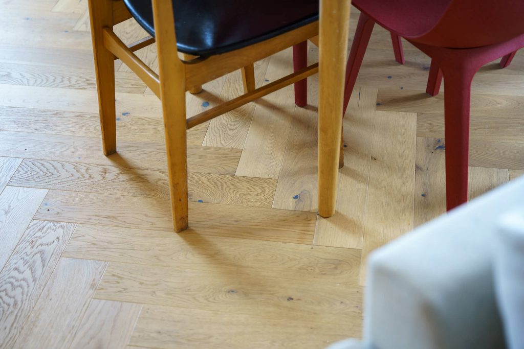 Takšna izbira parketa poudarja prestiž in zgodovinsko globino, hkrati pa ohranja svežino in sodoben videz bivalnega prostor.